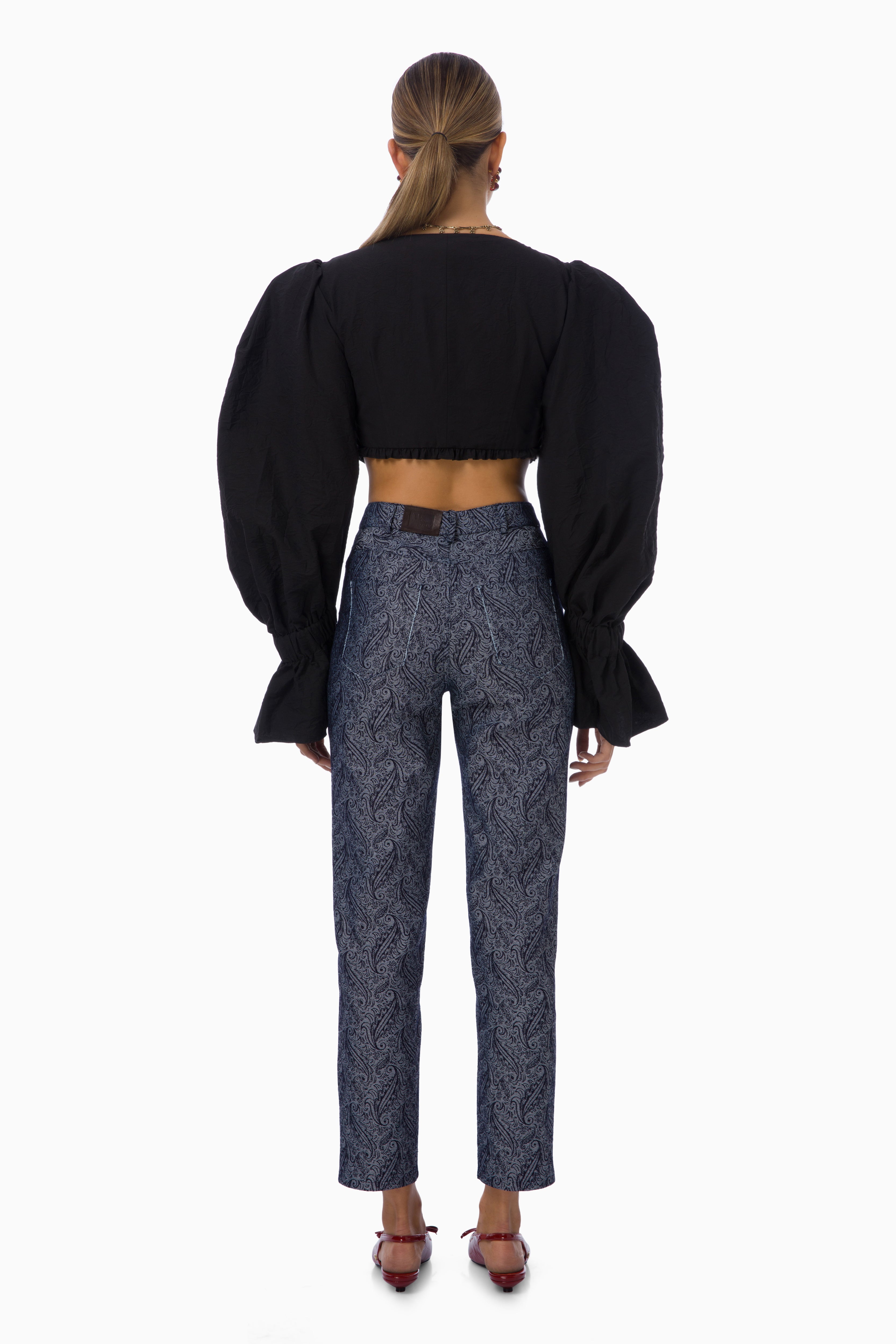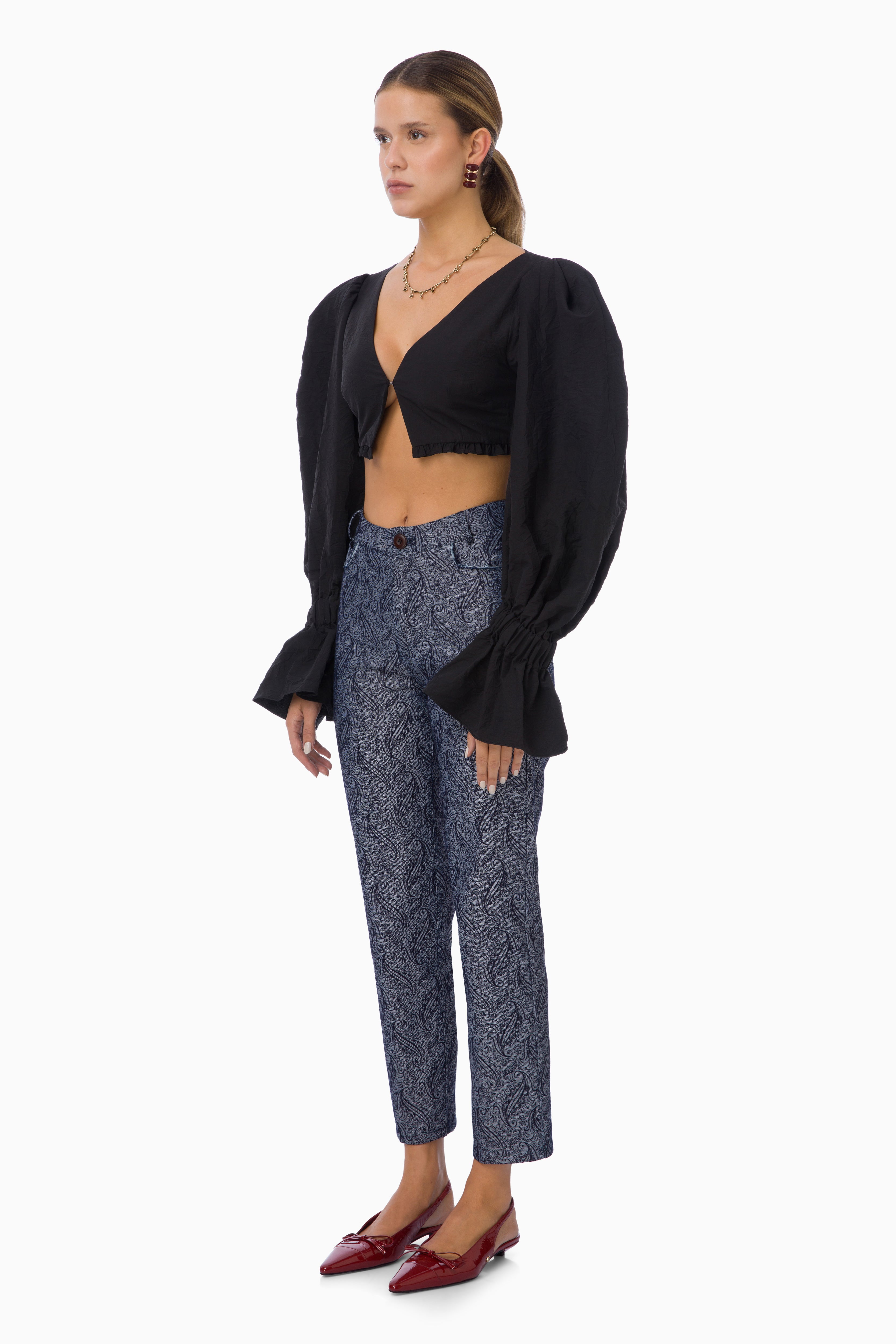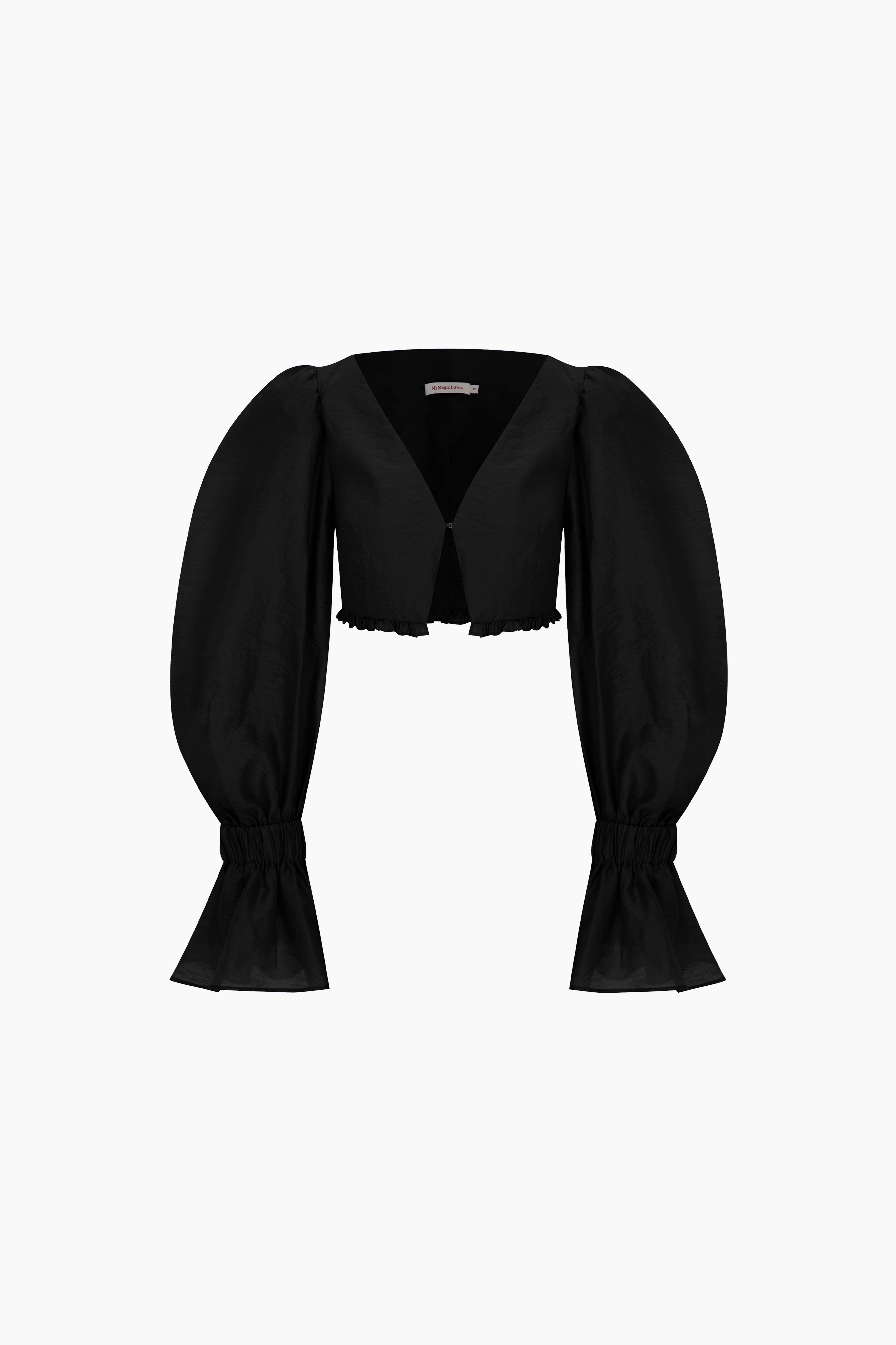 Sky Balloon Sleeve Shirt delivers a sophisticated look in black. The V-neckline and front button closure create a feminine silhouette, while the balloon sleeves add a sculptural modern volume. Its cropped length pairs perfectly with high-waisted trousers and skirts. Mi Magic Love — reinterpret classic style with a modern edge.