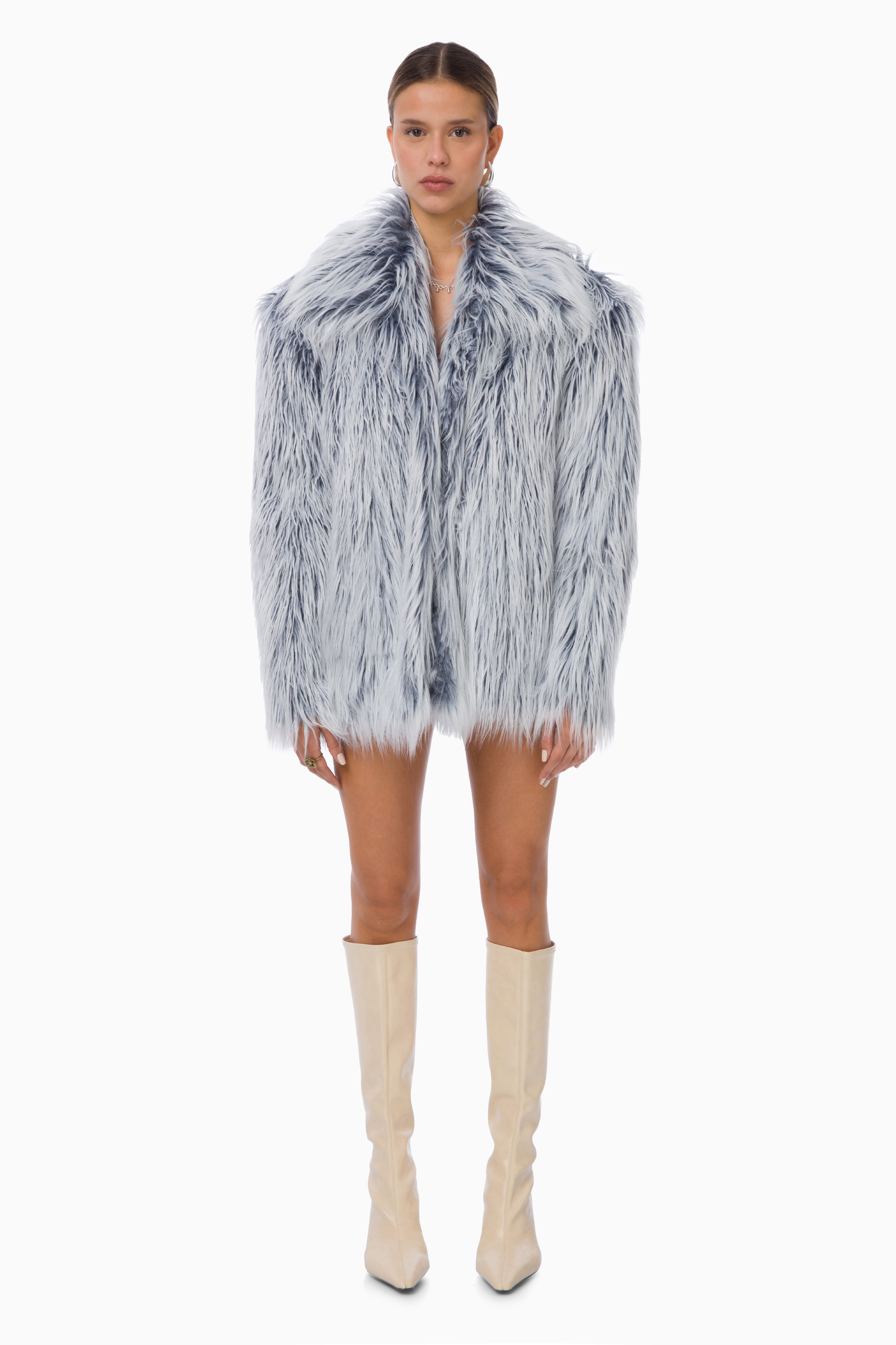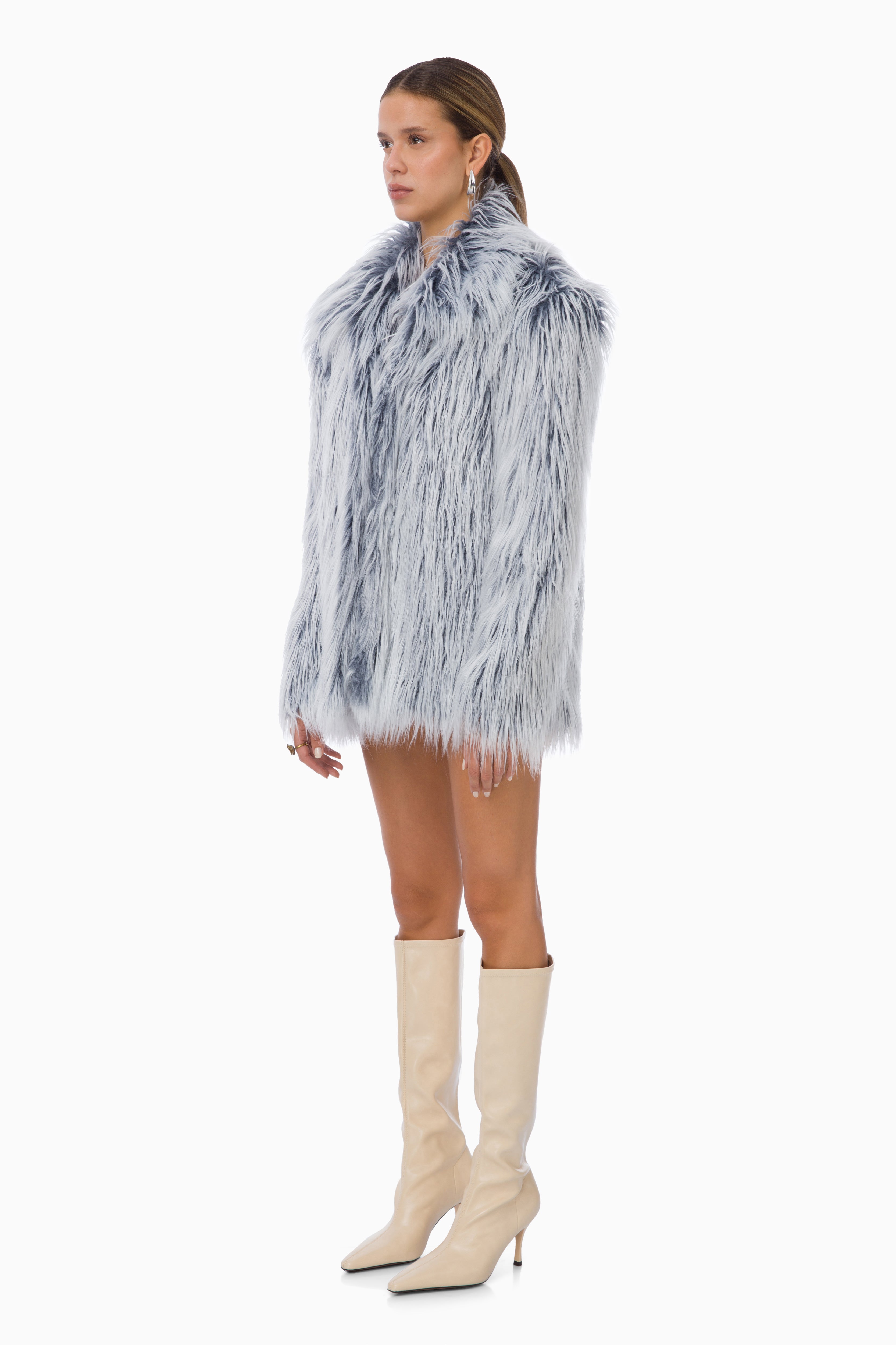 Rare Midi Fur Jacket exudes refined sophistication with its ice blue tone. The midi-length silhouette creates a modern balance, while the soft faux fur texture delivers warmth and luxury. With its open-front design, it achieves a simple yet striking look. Mi Magic Love — elevate your winter style with a touch of shine.